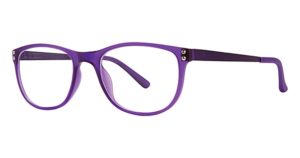 Designed for youthful style and comfort, the Modz Kids HELLO eyeglasses combine durability with a pop of fun color. These full-rim frames feature a versatile modified oval shape that is both fashionable and easy to wear. The vibrant grape matte finish adds a playful twist to a classic design, perfect for letting your child's personality shine.