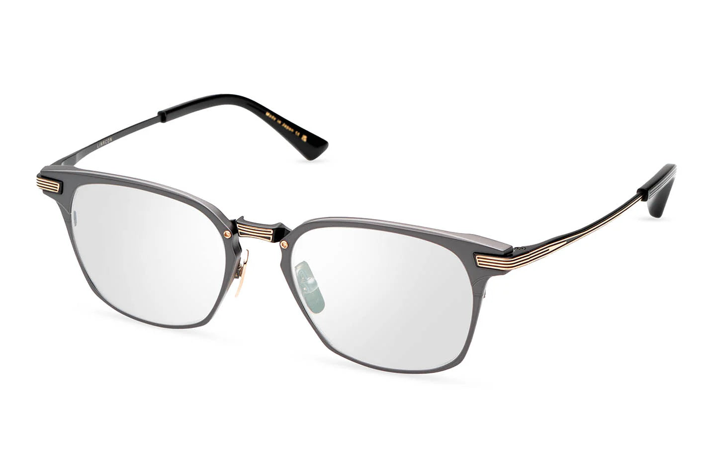 LINRCON, a classic square optical frame that embodies a perfect fusion of tradition and modernity. This frame showcases a sleek titanium structure, characterized by a refined titanium bridge and temples adorned with Tsuba-inspired line details. Each detail pays homage to the precision and artistry found in Japanese metalwork.
