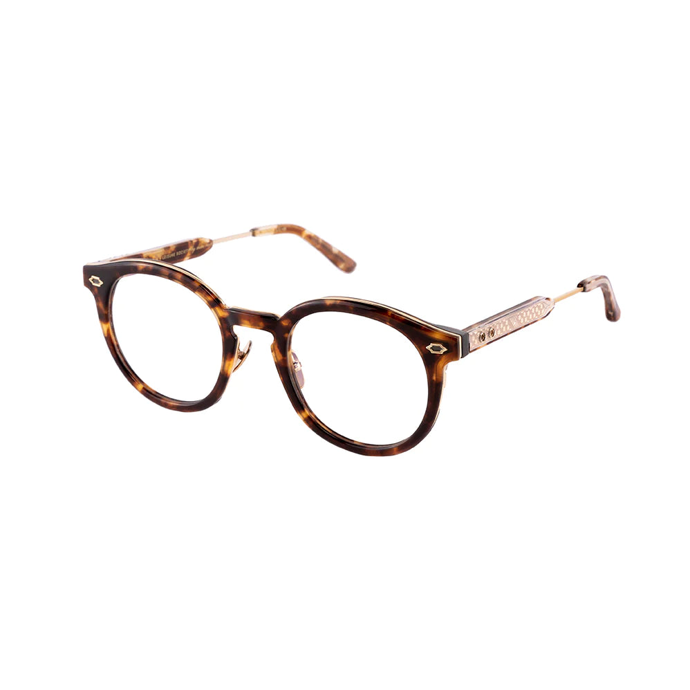 The Cortina is crafted out of Japanese cotton-based acetate with temples that have transparent layers to expose luxurious touches of intricately detailed metal hardware. The end pieces on the frame fronts contain pressed metal decor with colored enamel fills. This classic, round silhouette has modern touches of elegant detail.